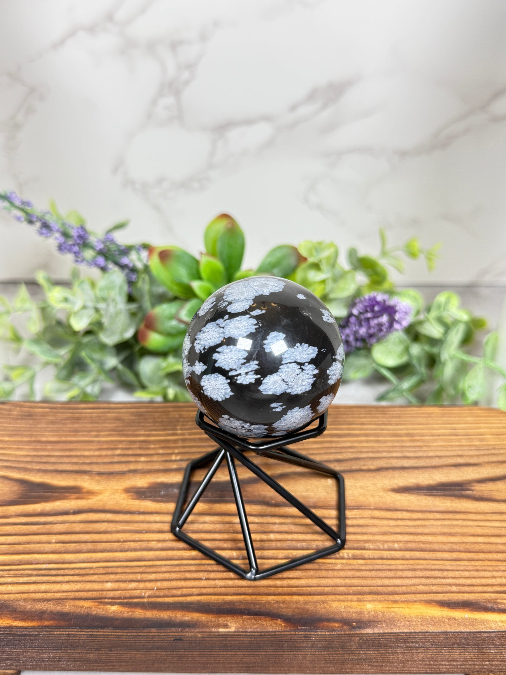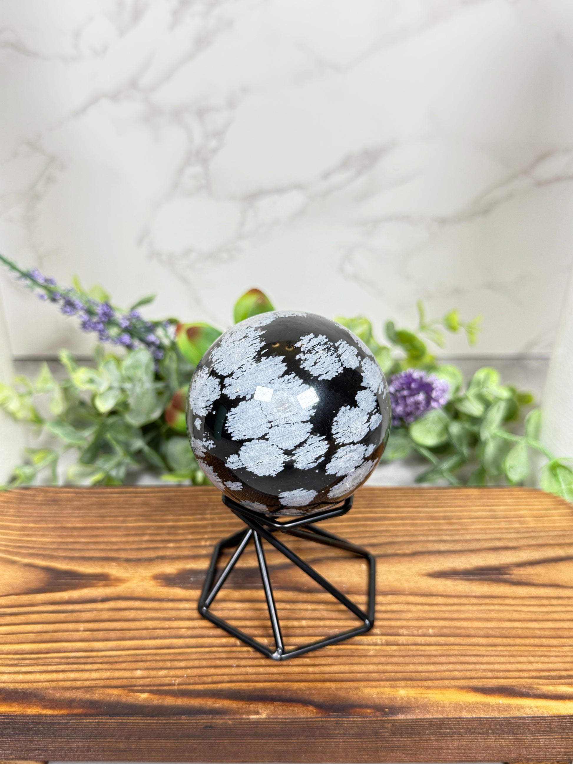 Beautiful snowflake obsidian spheres with plenty of snowflake pattern.